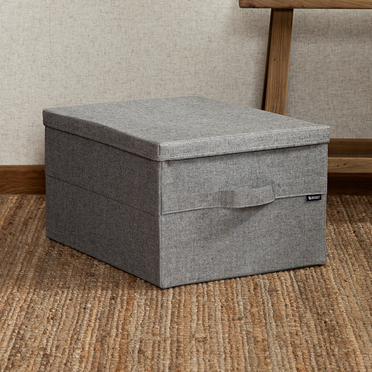 This storage box with lid offers a simple and refined way to organize your home. The lid protects the contents and allows for easy stacking, while handles on both short sides make it easy to carry or pull out. Ideal for closets, living rooms, home offices, or open shelving, it keeps everyday items neatly stored and out of sight. Available in SMALL, MEDIUM, and LARGE, it adapts effortlessly to different spaces and storage needs.