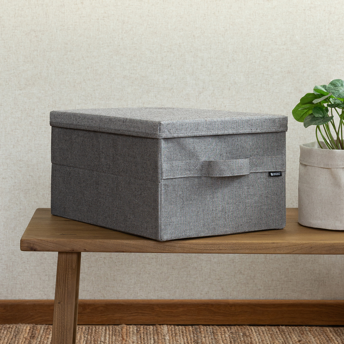 This medium size storage box with lid offers a simple and refined way to organize your home. The lid protects the contents and allows for easy stacking, while handles on both short sides make it easy to carry or pull out. Ideal for closets, living rooms, home offices, or open shelving, it keeps everyday items neatly stored and out of sight. Available in SMALL, MEDIUM, and LARGE, it adapts effortlessly to different spaces and storage needs.